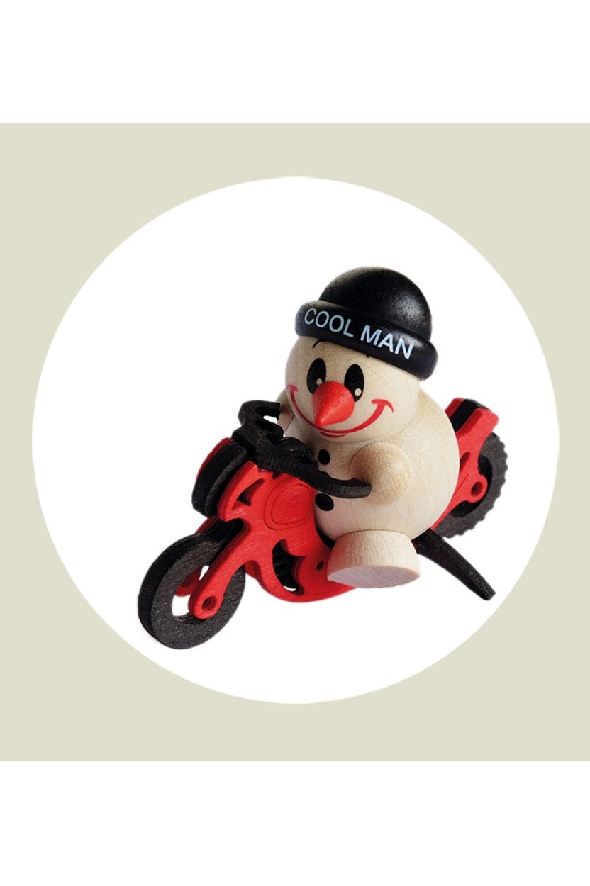 Dieser coole Schneemann ist flott mit seiner Maschine unterwegs.
