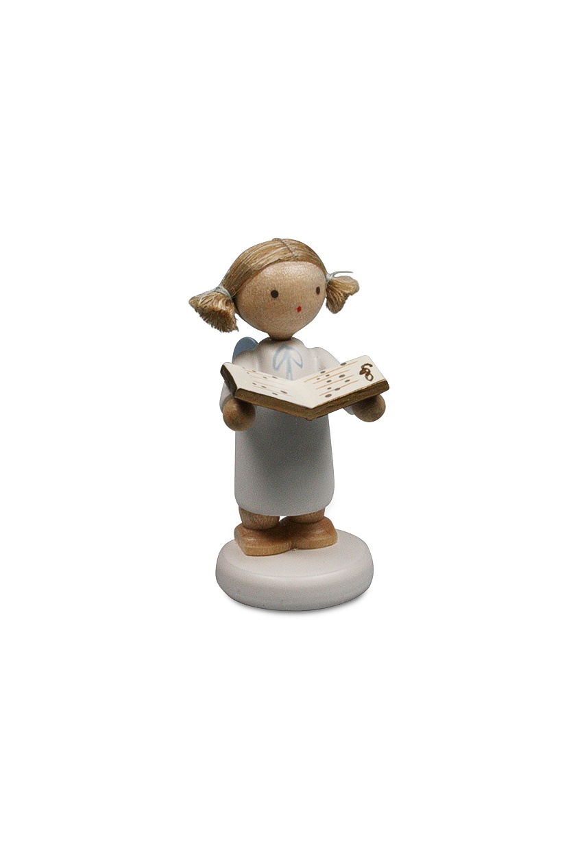 Die kleinen Miniaturen aus dem Hause Flade in Olbernhau als Kunstwerke zu bezeichnen ist sicher nicht übertrieben - hier sind noch wahre Kunsthandwerkerinnen und Spielzeugmacherinnen am Werk. Die nur 4,5 - 5 cm großen Figuren werden alle mit einer derart detailtreuen feinen Bemalung versehen, die nicht nur kleine Kinderaugen staunen lässt. Desweiteren sind das Markenzeichen der Flade-Engel die Flachshaare. Dafür wird für jede einzelne Figur eine Perücke aus Flachs angefertigt, die einzeln vernäht und auf die entsprechende Form des Haarschopfes geschnitten wird, um dann den Kopf der Figur zu zieren. Lassen auch Sie sich in den Bann der Kunstfertigkeit der Flade-Figuren ziehen. Jede der Figuren erzählt eigentlich für sich schon eine kleine Geschichte - aber mehrere Figuren zu einer Gruppe gestellt, können einem dann schon ganze Erzählungen entlocken.