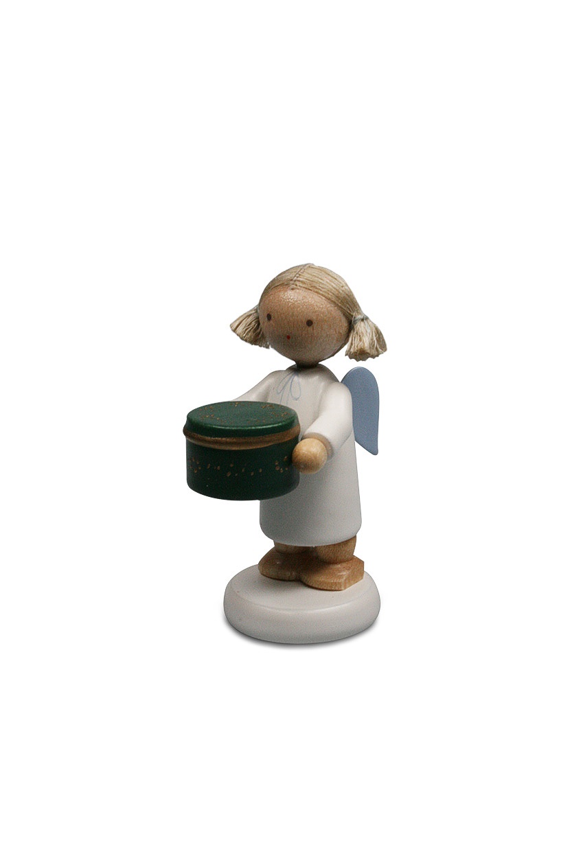 Die kleinen Miniaturen aus dem Hause Flade in Olbernhau als Kunstwerke zu bezeichnen ist sicher nicht übertrieben - hier sind noch wahre Kunsthandwerkerinnen und Spielzeugmacherinnen am Werk. Die nur 4,5 - 5 cm großen Figuren werden alle mit einer derart detailtreuen feinen Bemalung versehen, die nicht nur kleine Kinderaugen staunen lässt. Desweiteren sind das Markenzeichen der Flade-Engel die Flachshaare. Dafür wird für jede einzelne Figur eine Perücke aus Flachs angefertigt, die einzeln vernäht und auf die entsprechende Form des Haarschopfes geschnitten wird, um dann den Kopf der Figur zu zieren. Lassen auch Sie sich in den Bann der Kunstfertigkeit der Flade-Figuren ziehen. Jede der Figuren erzählt eigentlich für sich schon eine kleine Geschichte - aber mehrere Figuren zu einer Gruppe gestellt, können einem dann schon ganze Erzählungen entlocken.