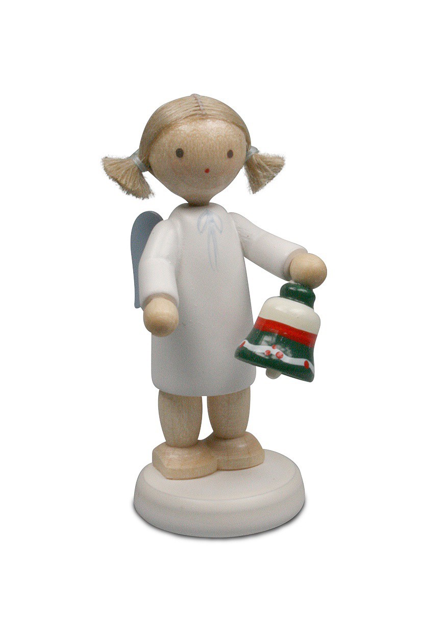Die kleinen Miniaturen aus dem Hause Flade in Olbernhau als Kunstwerke zu bezeichnen ist sicher nicht übertrieben - hier sind noch wahre Kunsthandwerkerinnen und Spielzeugmacherinnen am Werk. Die nur 4,5 - 5 cm großen Figuren werden alle mit einer derart detailtreuen feinen Bemalung versehen, die nicht nur kleine Kinderaugen staunen lässt. Desweiteren sind das Markenzeichen der Flade-Engel die Flachshaare. Dafür wird für jede einzelne Figur eine Perücke aus Flachs angefertigt, die einzeln vernäht und auf die entsprechende Form des Haarschopfes geschnitten wird, um dann den Kopf der Figur zu zieren. Lassen auch Sie sich in den Bann der Kunstfertigkeit der Flade-Figuren ziehen. Jede der Figuren erzählt eigentlich für sich schon eine kleine Geschichte - aber mehrere Figuren zu einer Gruppe gestellt, können einem dann schon ganze Erzählungen entlocken.