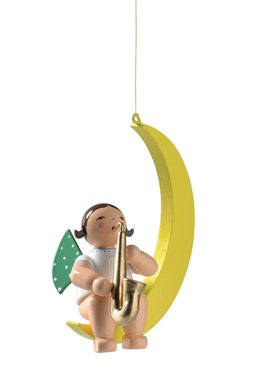 Wendt&Kühn Christbaumengel - Grünhainichener Engel® mit Saxophon im Mond