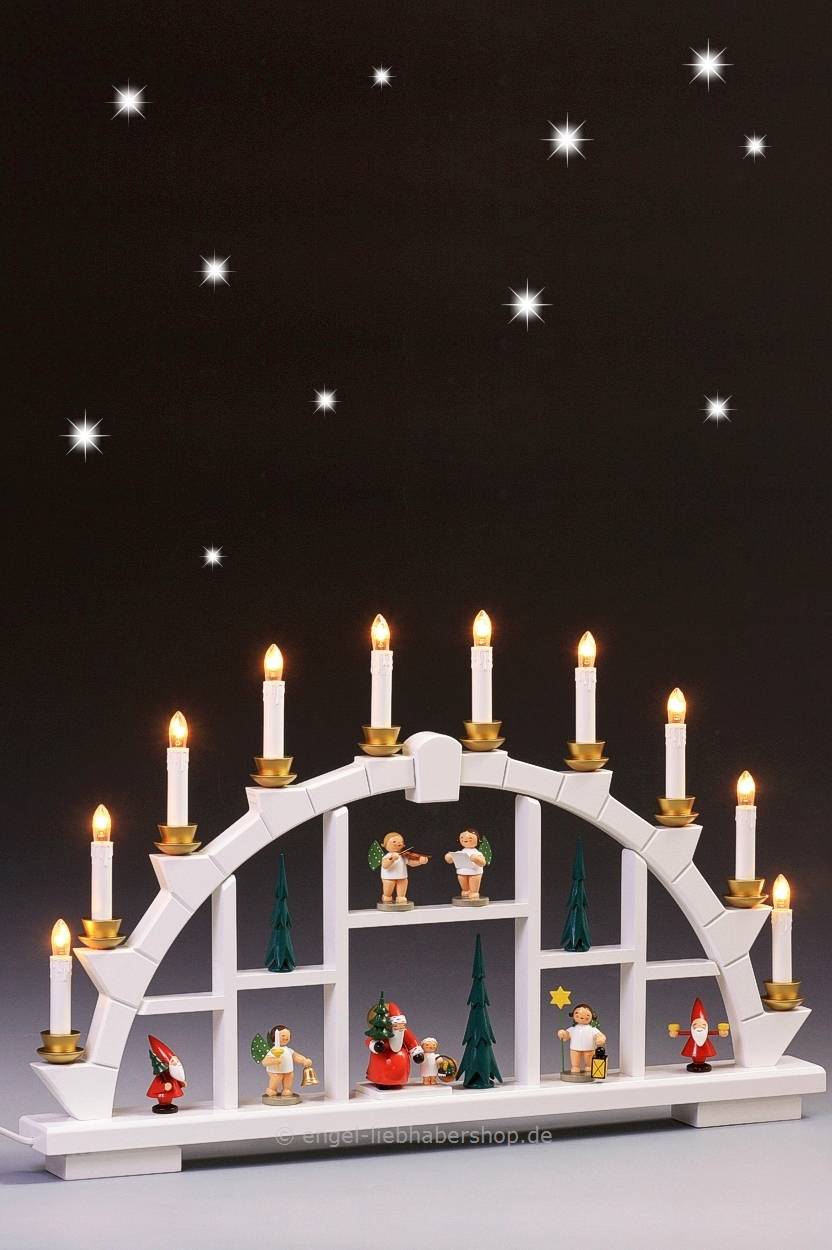 weißer Schwibbogen elektrisch beleuchtet mit 10 Kerzen