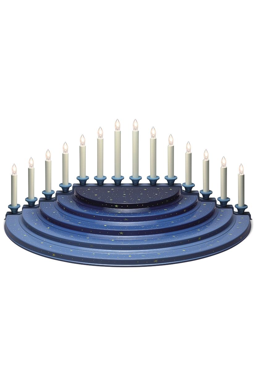 Der Engelberg ist mit einem blauen Farbverlauf von dunkel zu hell gearbeitet und mit kleinen Sternen und Punkten bemalt. Er bildet somit einen ausgewogenen Kontrast zur Bemalung der Grünhainichener Engel.