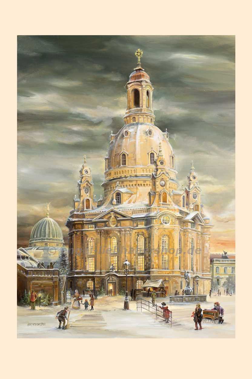 Dahinter versteckt sind liebevoll gemalte weihnachtliche Bildchen. Hinter den Fenstern der Kirche verbergen sich Details der Innengestaltung der Dresdner Frauenkirche. Dieser Adventskalender geht seit seiner Entstehung um die Welt, denn die Dresdner Frauenkirche ist weltbekannt.