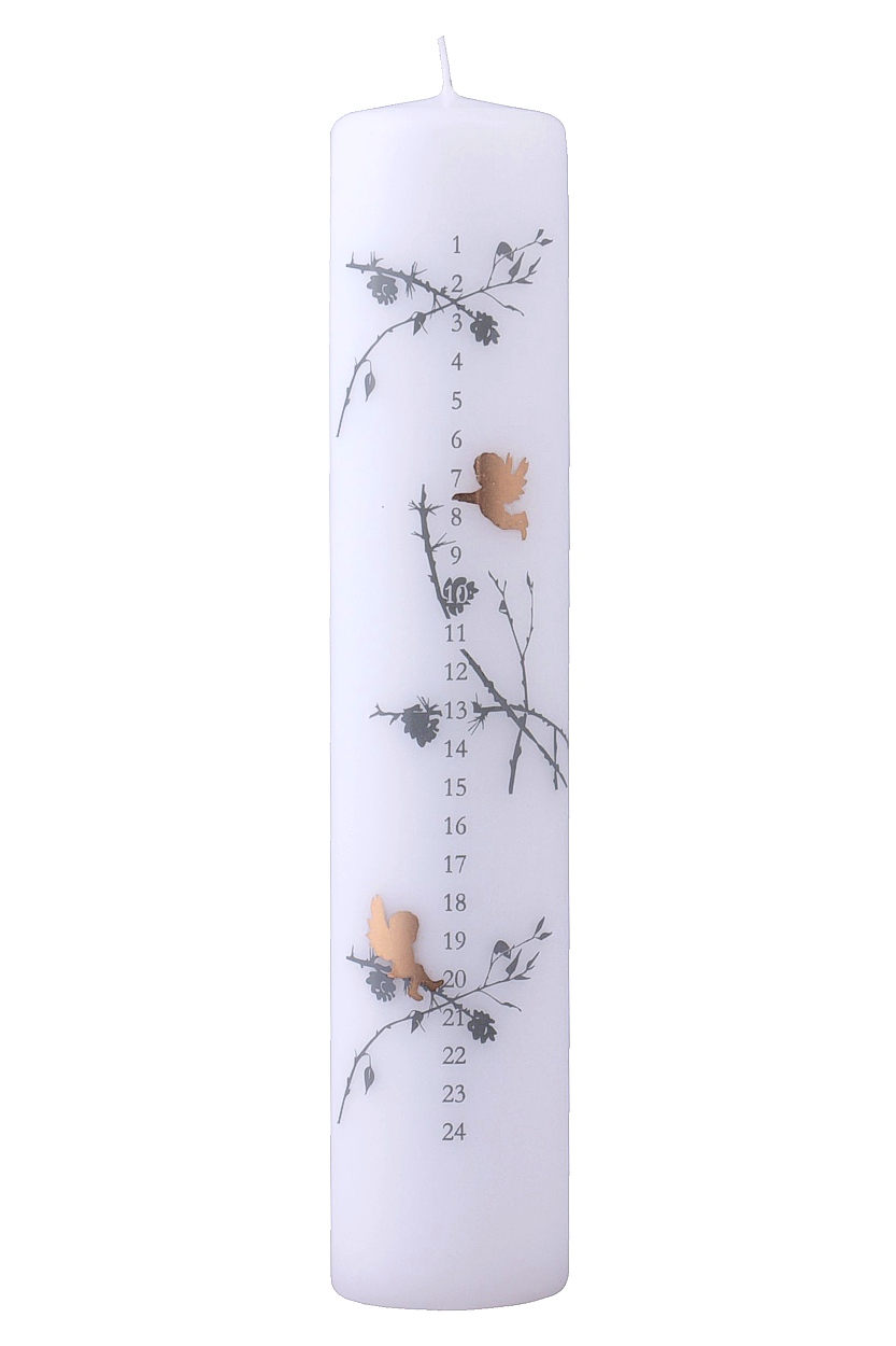 Die Adventskalenderkerze, fliegende Engel, wird Sie jeden Tag durch den Advent begleiten. An allen 24 Adventstagen können Sie ein Stück der Kerze abbrennen, um, so die Zeit bis Weihnachten etwas zu verkürzen. Die Kerze hat dabei eine Gesamtbrenndauer von 56 Stunden, so bietet die Kerze jeden Tag zum Frühstück und/oder Vesper ausreichend Zeit für eine längere "Pause".