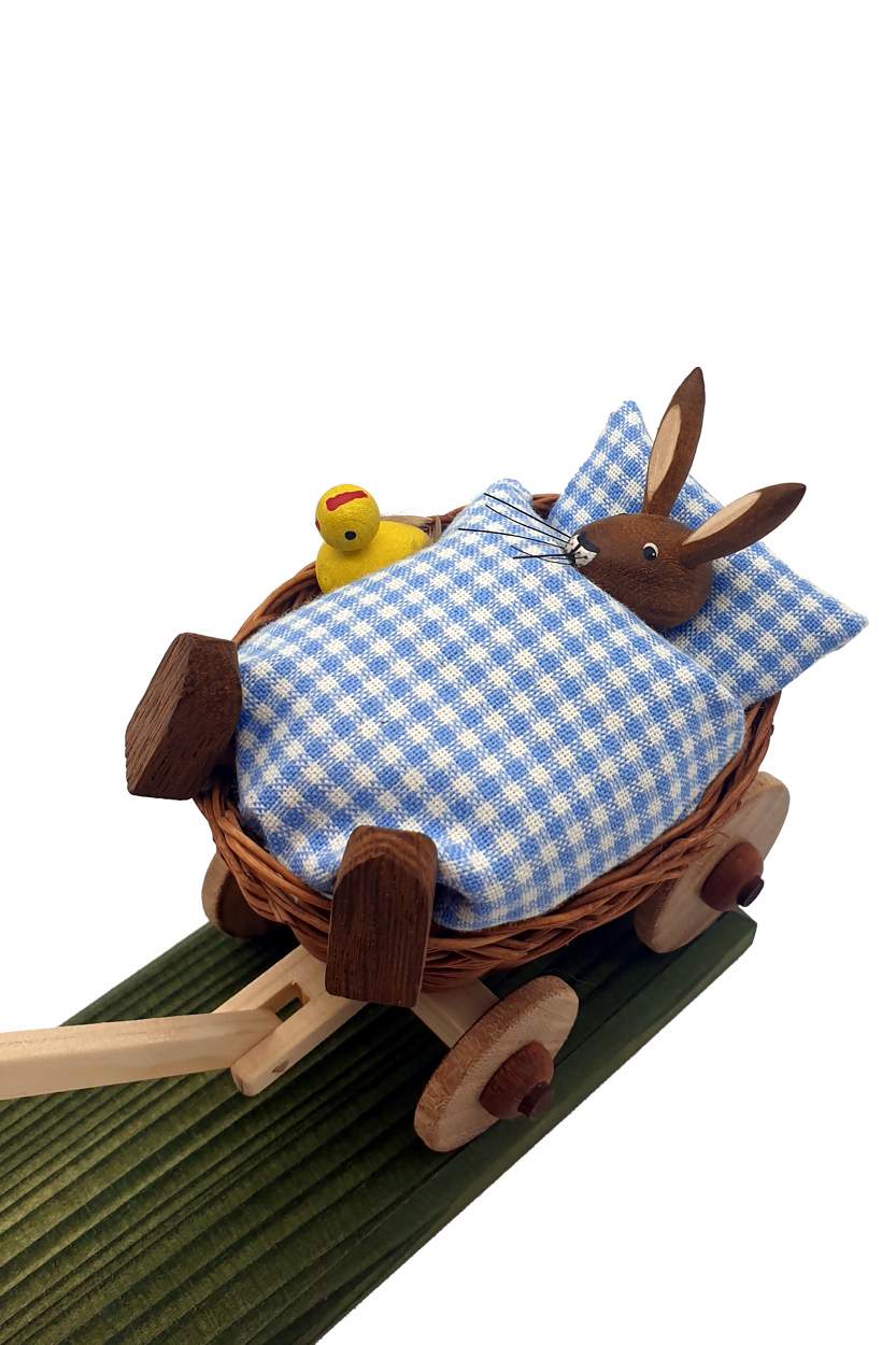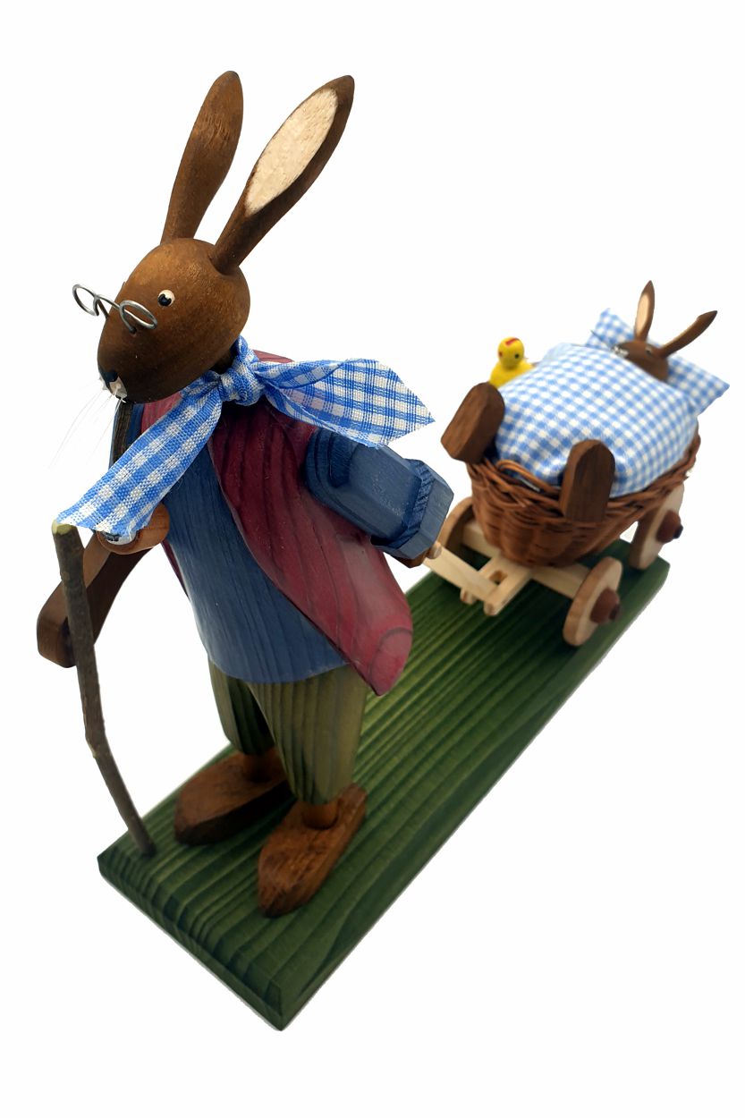 Osterhasengroßvater mit Baby im Wagen 18cm - Fa. Steglich