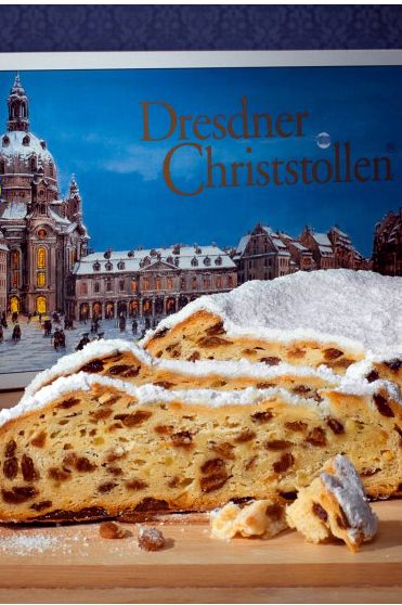 Haben Sie den Christstollen angeschnitten, schieben Sie bitte die Stollenhälften wieder zusammen. Sie verhindern so das Austrocken der Anschnitte.