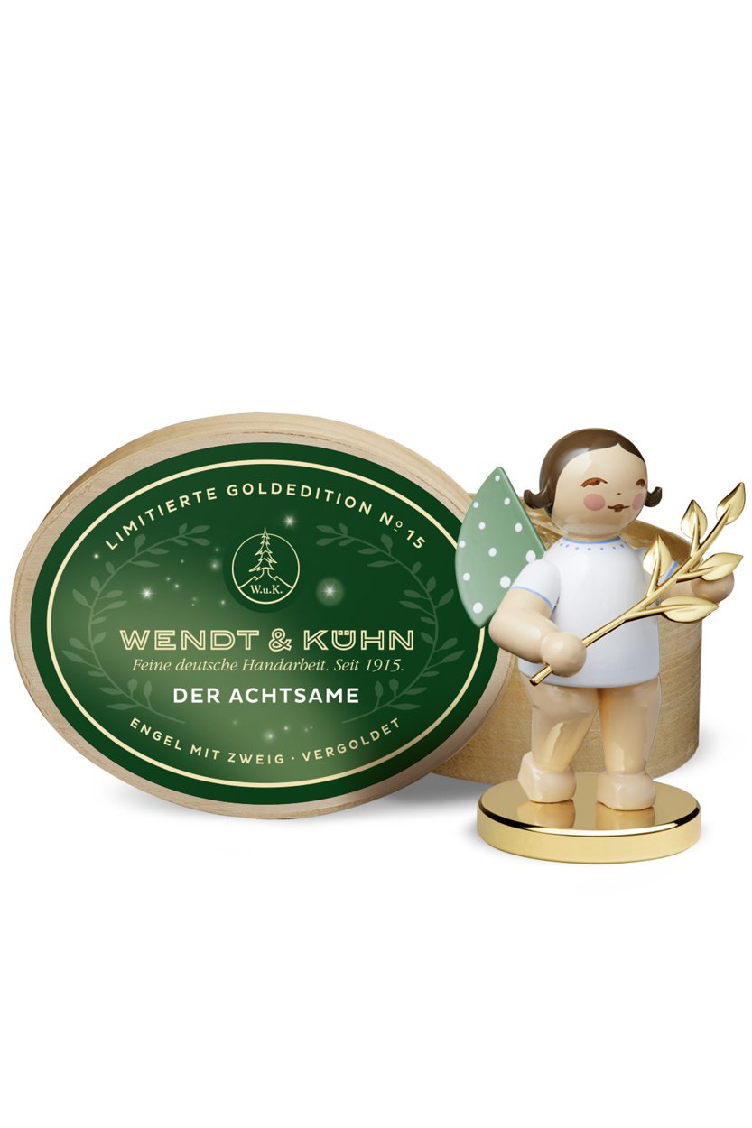 Der Achtsame - limitierte Goldedition No. 15 - Grünhainichener Engel mit Zweig - Wendt und Kühn 2022 - BLOND