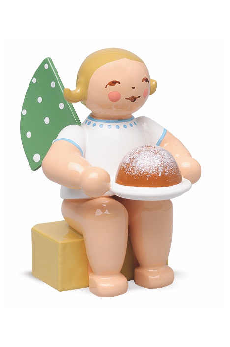 Grünhainichener Engel® klein mit Kuchen - sitzend, Wendt und Kühn