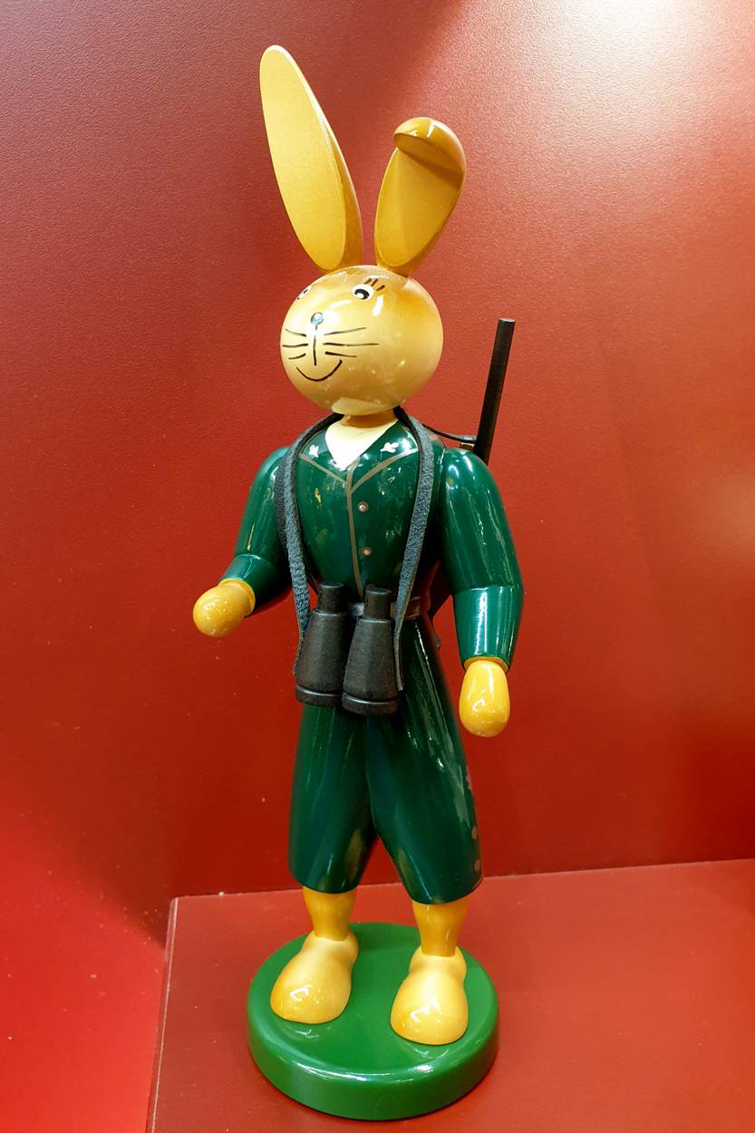 Das Markenzeichen der Fa. RuT Gahlenz sind bei den Hasen, dass immer ein Ohr eingeknickt ist. - Knickohrhase. Mit Farblack aufwendig bemalt sind diese Hasen sehr beliebt.