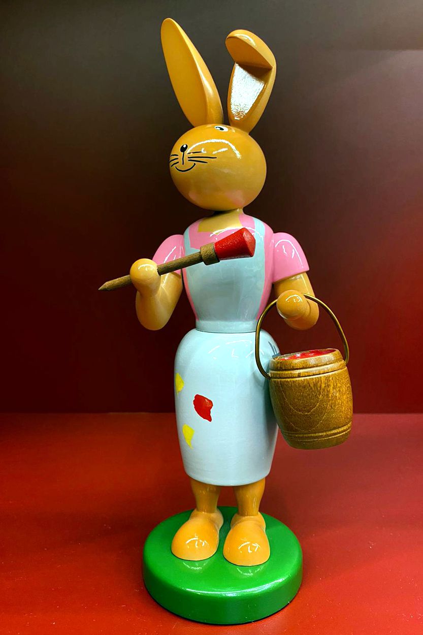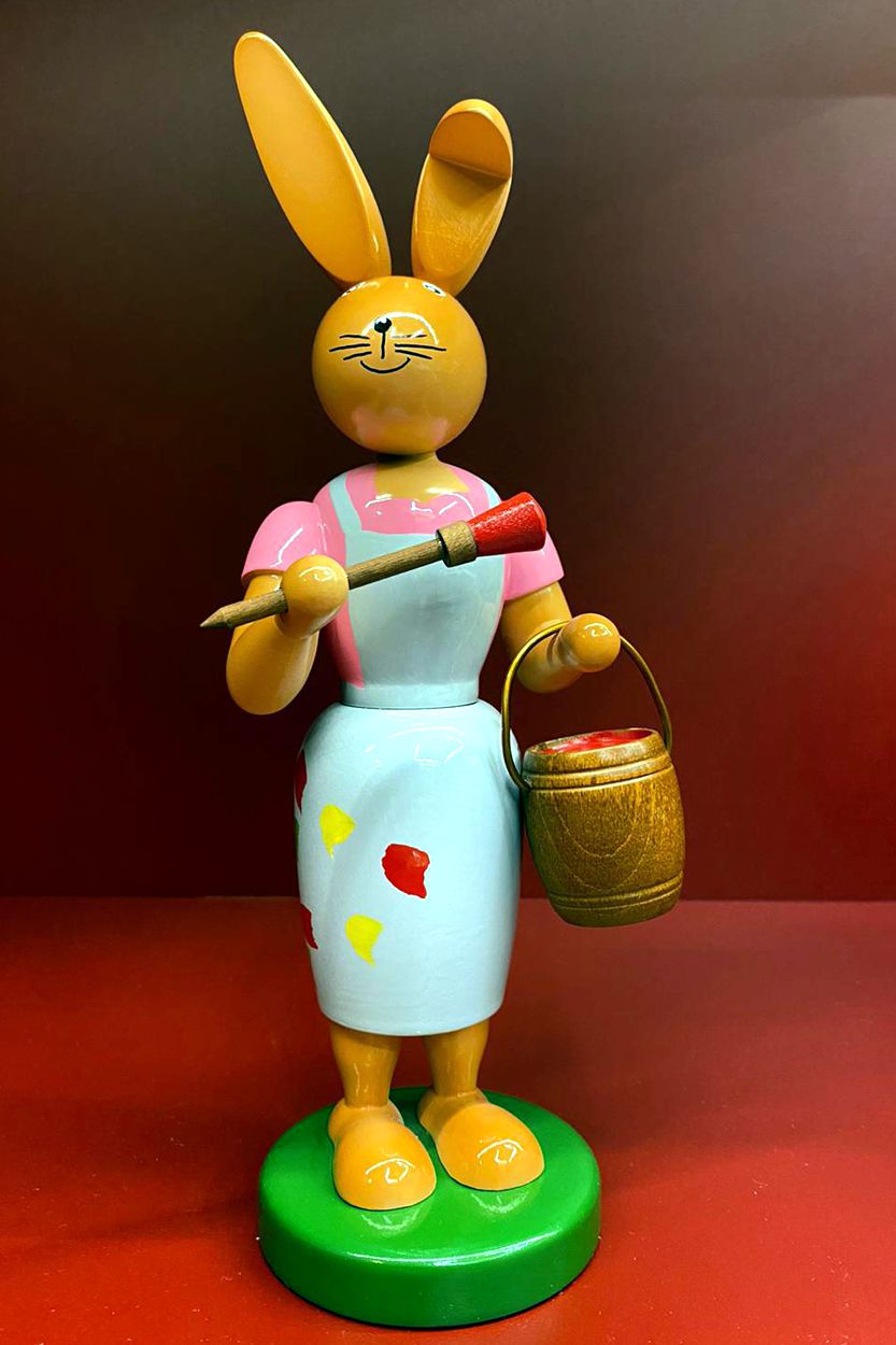 Das Markenzeichen der Fa. RuT Gahlenz sind bei den Hasen, dass immer ein Ohr eingeknickt ist. - Knickohrhase. Mit Farblack aufwendig bemalt sind diese Hasen sehr beliebt.