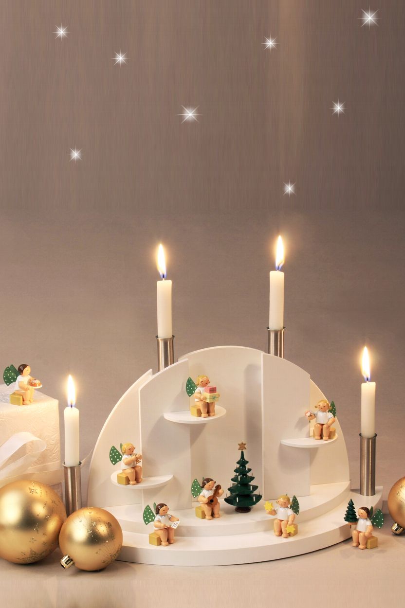 Dieser kleine weisse Lichterbogen bildet eine attraktive Kulisse, für die kleinen, sitzenden Grünhainichener Engelchen der Fa. Wendt & Kühn.