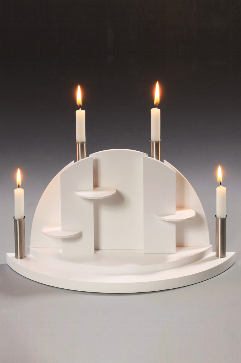 Sie können diesen Dekovorschlag komplett erwerben oder den Lichterbogen einzeln und Sie stellen sich dann Ihre Bestückung ganz nach Ihren Wünschen zusammen. Die Beleuchtung erfolgt mittels 4 Krinner-Kerzen. Krinnerkerzen ist ein kabellosen Kerzensystem, welches mit Batterien und Fernbedienung betrieben wird.