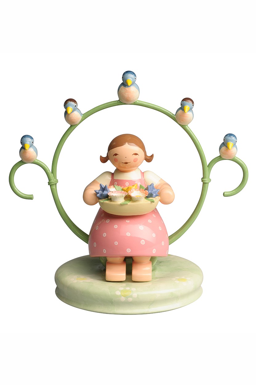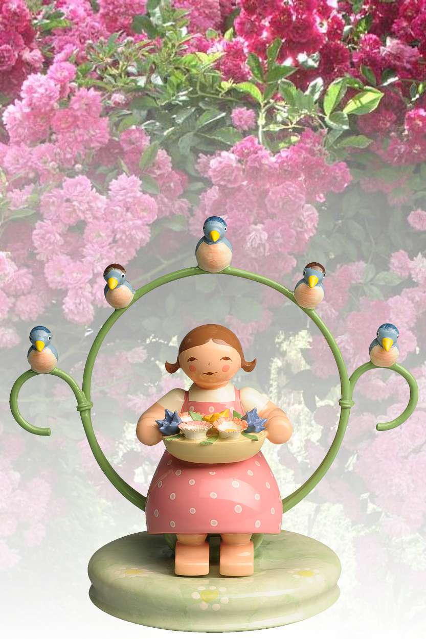 Mädchen im Reifen - mit Blumenschale und Vögeln -Wendt&Kühn