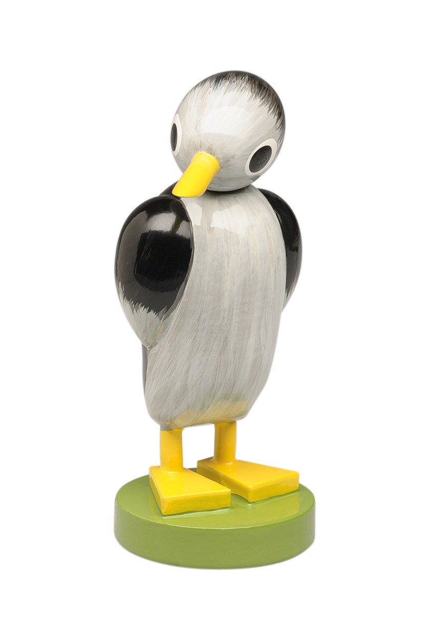 Fast zeitgleich mit dem internationalen Weltpinguintag am 25. April haben die Pinguine von Wendt & Kühn ihren großen Auftritt. Um sich an dem Trio zu erfreuen, müssen Liebhaber nicht extra in die Antarktis reisen, die Pinguine watscheln mit ihren großen gelben Brettchenfüßen direkt zu ihnen nach Hause. Ihr schwarz-graues Gefieder wirkt durch die lasierende Bemalung bauschig und weich. Das gestalterische i-Tüpfelchen ist wohl der drehbare Kopf des großen und mittleren Pinguins, der sie mal verstohlen zur einen, mal keck zur anderen Seite schauen lässt. Olly Sommer, später Wendt, gestaltete die Figurengruppe, neben vielen anderen Tierfiguren, bereits zwischen 1922 und 1925 und hinterließ einen fantasievollen Entwurf, der noch heute verzückt. Als Geschenk für kleine Entdecker, die es den Pinguinen gleichtun und mit großen Augen die Welt erkunden. Als Zeichen der Zuneigung für einen Menschen, mit dem man in treuer Pinguin-Manier für immer gemeinsam durchs Leben gehen will. Und natürlich für alle Fans der liebenswerten Frackträger.