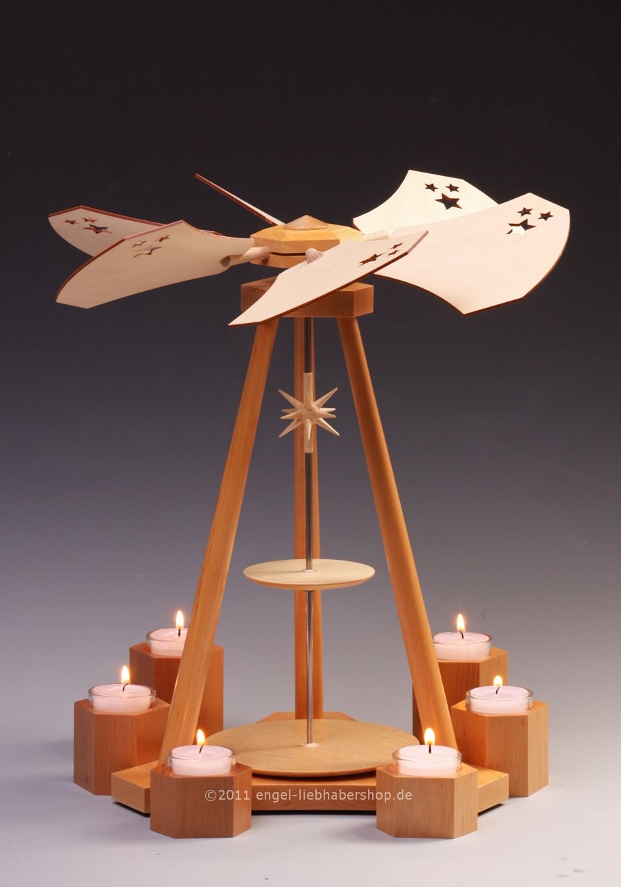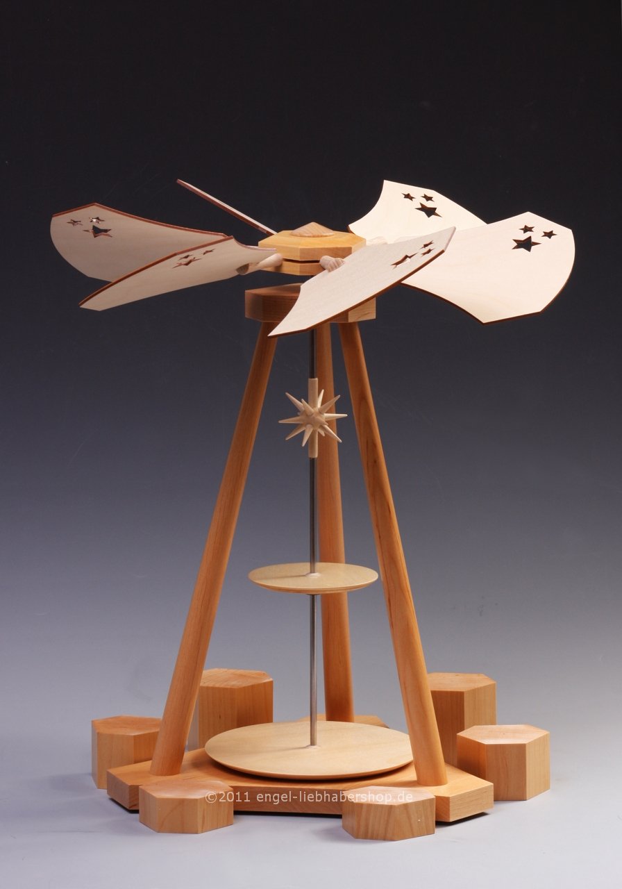 Diese Pyramide der Seiffener Firma Schalling verstrahlt Exklusivität pur. Unter dem Adventsstern könnten sich 3 kleine Margeritengel, die so allerlei Gebäck herstellen, und 3 Gabebringerengel drehen, welche so manches Geschenk bringen. Die Gabenbringer waren bis 2010 im Programm der Wendt und Kühn KG waren. Weitere Engel können auf den losen Sockeln individuell angeordnet werden. Die Sockel sind so gearbeitet, dass diese auf einer Seite plan gearbeitet sind und auf der anderen Seite ein Teelicht mit Glaseinsatz aufnehmen können um die Pyramide in der Weihnachtszeit auch drehen lassen zu können.