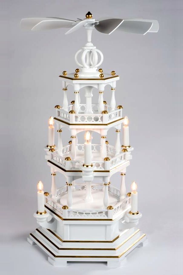 Elektrische Pyramiden sind sehr gefragt, bei Kunden denen es sicherer ist, als mit echten Kerzen. Man kann auch mal die "Aufsicht" vernachlässigen ohne Gefahr zu laufen, dass eine Kerze umfallen könnte.