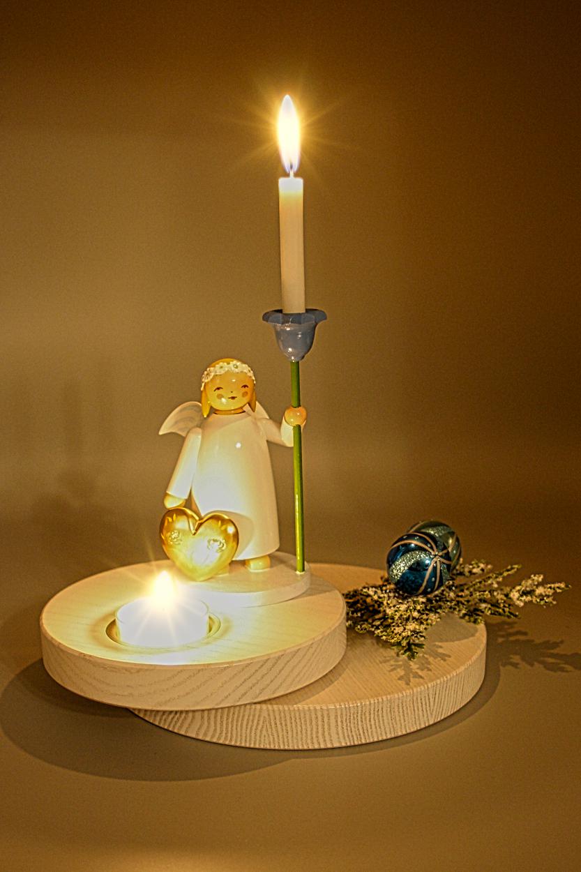großer Margeritenengel mit Herz und Leuchter (Höhe 13 cm)