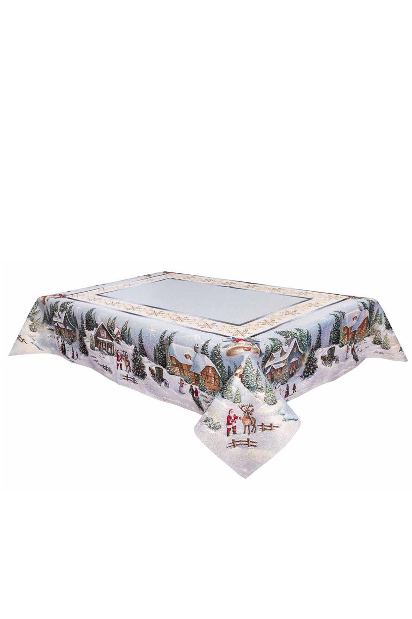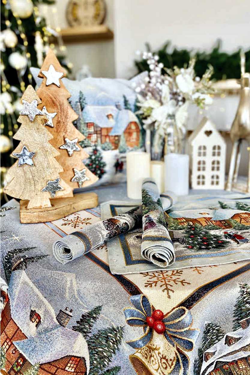 Tischdecke mit Gold-Lurex Design: Christmas in Mountains - Ø140 cm