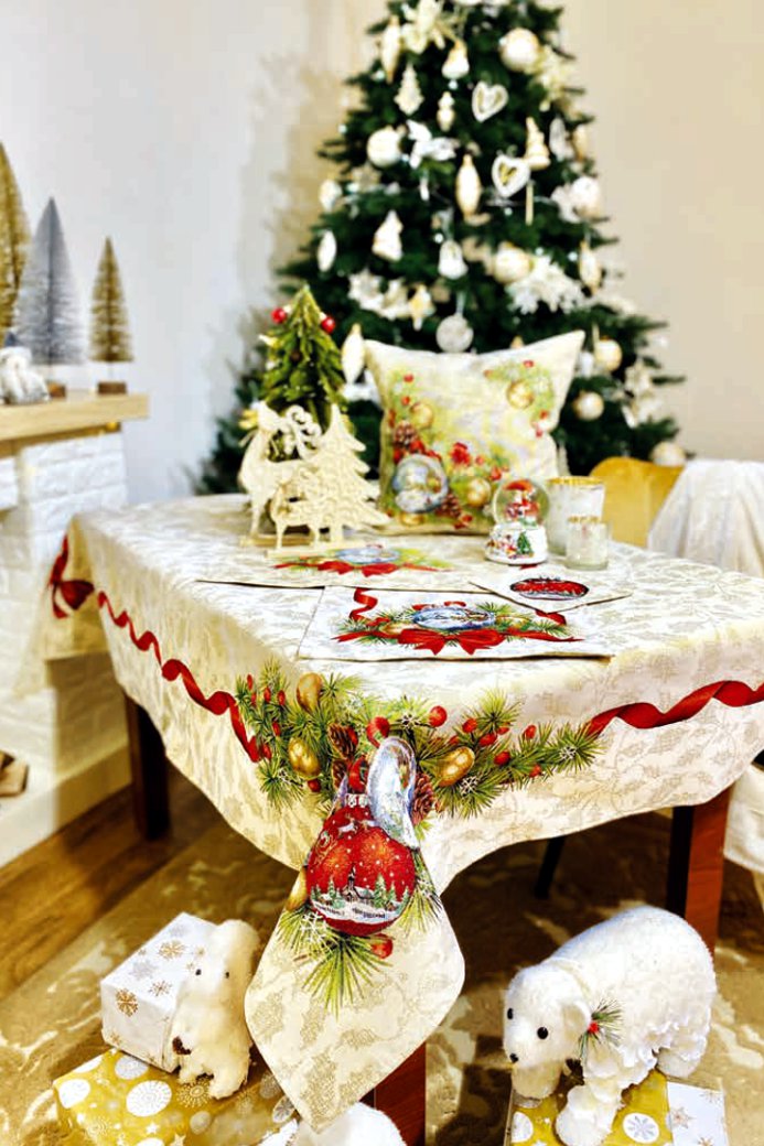 Tischdecke mit Gold-Lurex Design: New Year's Composition - 137x180 cm