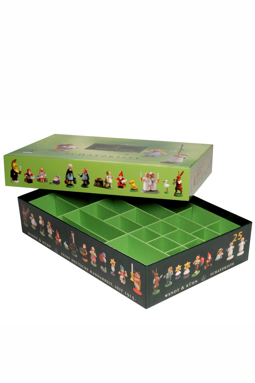Wohin mit den Blumenkindern und ihren Freunden, wenn sie in der Adventszeit den Engeln und Weihnachtsmännern die Bühne überlassen und ihren wohlverdienten Winterschlaf antreten? In der neuen hochwertigen und stabilen Schatzkiste können sie nun gut geschützt ruhen. Und da sich die Blumenkinder, Tierfiguren und Frühlingsboten in Höhe und Breite oft unterscheiden, bietet die Box verschieden große Fächer. Durch die flexibel steckbaren Stege können sie den besonderen Schätzen ein maßgeschneidertes Winterquartier einrichten.