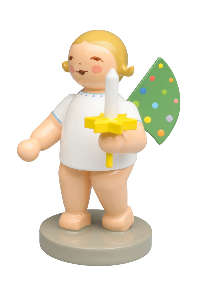 World Childhood Foundation Engel - mit farbigen Punkten - blond/Kerze links