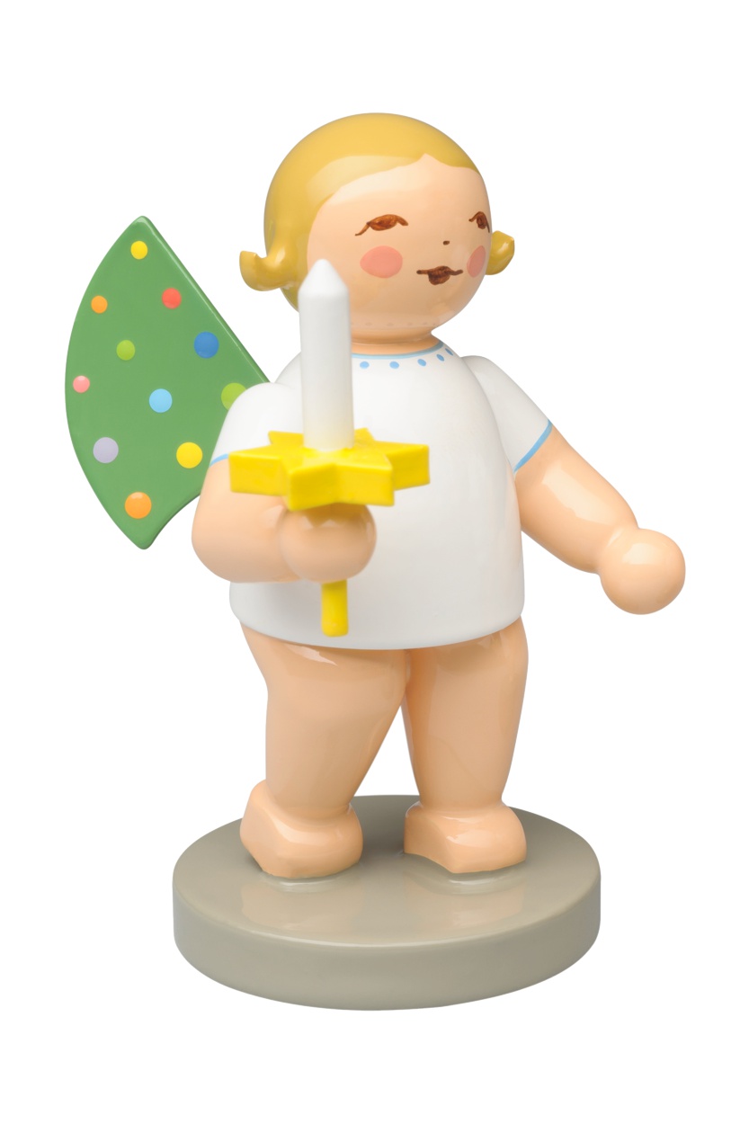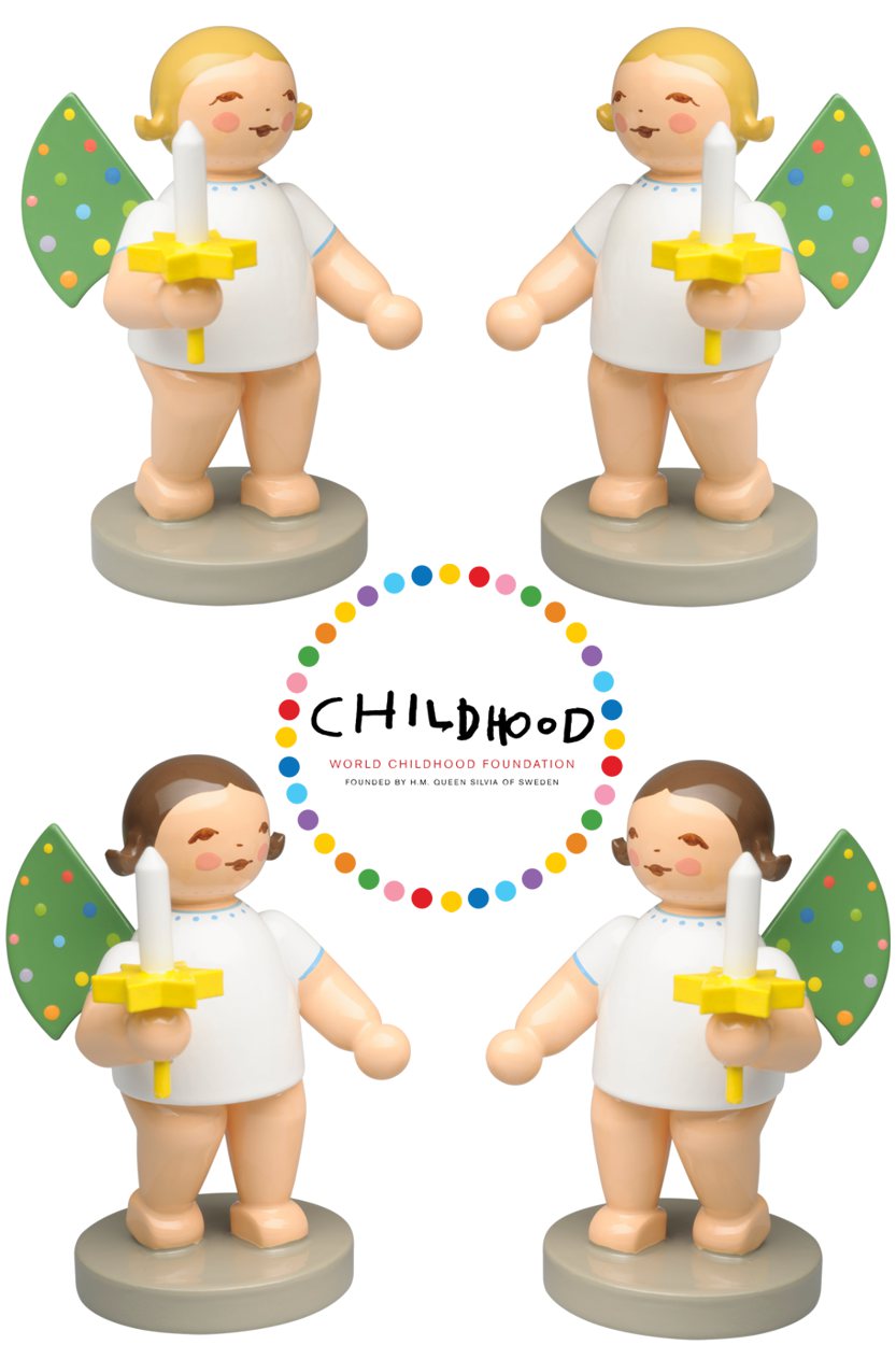 World Childhood Foundation Engel - mit farbigen Punkten - blond/Kerze rechts