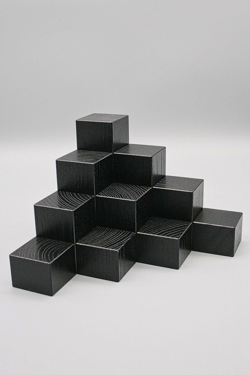 Die Holzquader mit einer Stellfläche von jeweils 4 x 4 cm sind fest zusammengeleimt und schwarz lasiert.