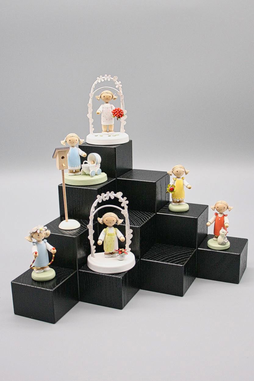 Mit der Würfeltreppe/Würfelecke können Sie auf kleiner Fläche relativ viele kleine Figuren präsentieren - ideal für erzgebirgische Schätze, wie Engel, Hasen oder Kinderszenen. Durch die verschiedenen Höhen lockert die Präsentation auf und wirkt dadurch nicht überladen.