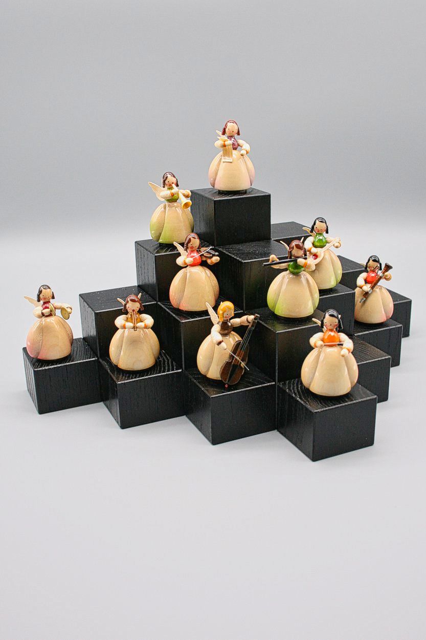 Mit der Würfeltreppe können Sie auf kleiner Fläche relativ viele kleine Figuren präsentieren - ideal für erzgebirgische Schätze, wie Engel, Hasen oder Kinderszenen. Durch die verschiedenen Höhen lockert die Präsentation auf und wirkt dadurch nicht überladen.